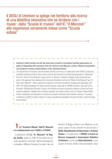 cultural institutions. Parallel work in biology education and citizen science, led by Professor Tiziana Altiero,