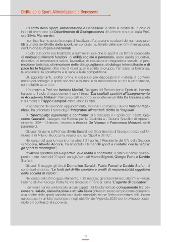 niversità di Milano-Bicocca ha relazionato su “Sport e Diritto”.