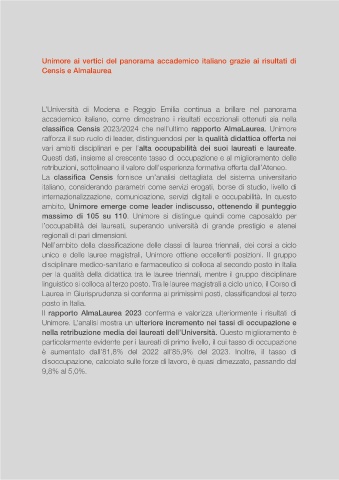 unico e delle lauree magistrali, Unimore ottiene eccellenti posizioni. Il gruppo