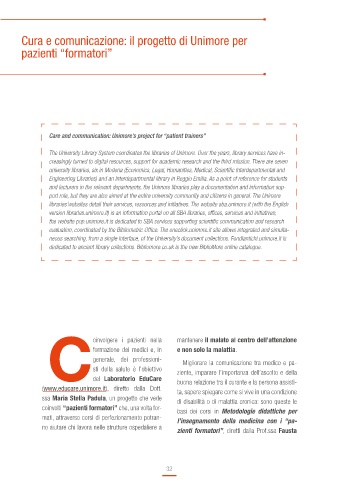 and lecturers in the relevant departments, the Unimore libraries play a documentation and information sup-