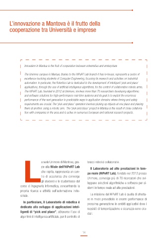 them at another, using a robotic arm. The ‘pick and place’ project in Mantua is the result of close collabora-