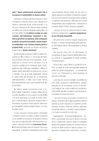 Il corso di laurea in Chimica Verde e Sostenibile ri di ricerca universitari e di altri enti.