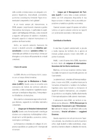 petenze linguistiche, interculturali, economiche, smo (LaLIT): Il corso mira a creare professio-