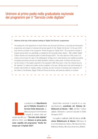 Servizio Civile Universale, re- bliotecario di Ateneo – SBA, dal titolo “Cultura