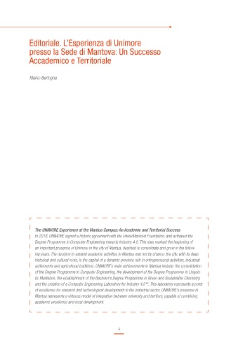 settlements and agricultural traditions. UNIMORE’s main achievements in Mantua include: the consolidation