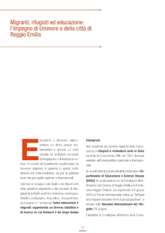 psicologico) e il complesso tema educazione e ridosso della Giornata internazionale del rifu-