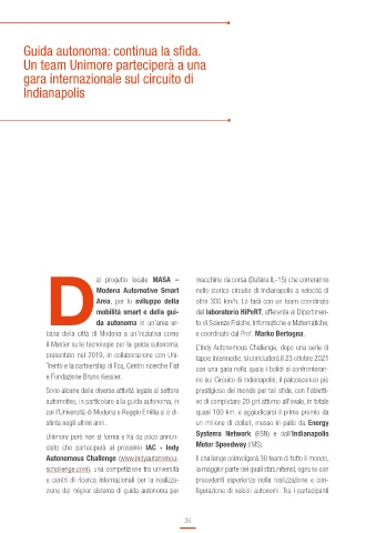 Unimore però non si ferma e ha da poco annun- Systems Network (ESN) e dall’Indianapolis