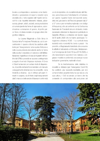 Scienze della Formazione Primaria (su cui ci con- rogazione a distanza. Il CdS - il cui curricolo trova