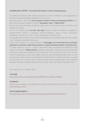 dato vita ad un progetto divulgativo dal titolo: “Vocabolario critico - Pillole di SCC”.