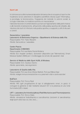 In Unimore sono attivi numerosi laboratori di ricerca che si occupano di sport e che