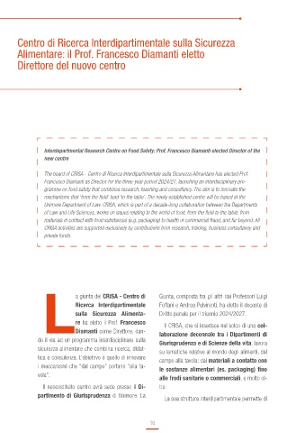 The board of CRISA - Centro di Ricerca Interdipartimentale sulla Sicurezza Alimentare has elected Prof.