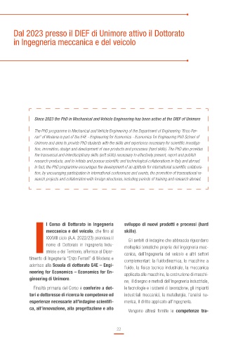 Since 2023 the PhD in Mechanical and Vehicle Engineering has been active at the DIEF of Unimore