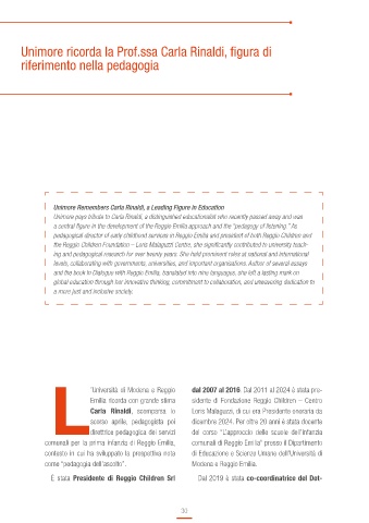 Unimore pays tribute to Carla Rinaldi, a distinguished educationalist who recently passed away and was