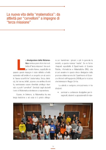 le “lauree scientifiche” (matematica, fisica, chimi- ze e Metodi dell’Ingegneria (DISMI) per le iniziative
