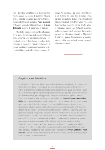 e Reggio Emilia sono gli ottimi risultati che i ra- di Unimore, quando frequentavano le superiori,