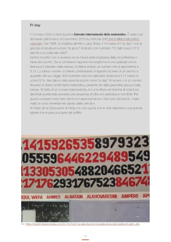 nazionale. Dal 1988, su iniziativa del fisico Larry Shaw, il 14 marzo è il “pi day”, cioè la