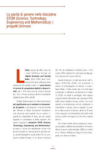 tra i 16 e i 74 anni possiede almeno competenze rie STEM, con divari a svantaggio delle ragazze