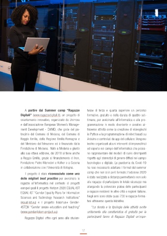 Digitali” (www.ragazzedigitali.it), un progetto di formativo, gratuito e della durata di quattro set-