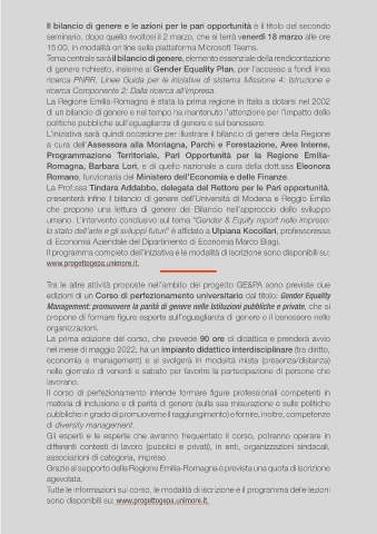 presenterà infine il bilancio di genere dell’Università di Modena e Reggio Emilia