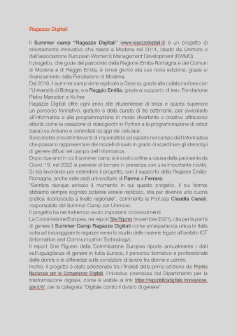 Il Summer camp “Ragazze Digitali” (www.ragazzedigitali.it) è un progetto di