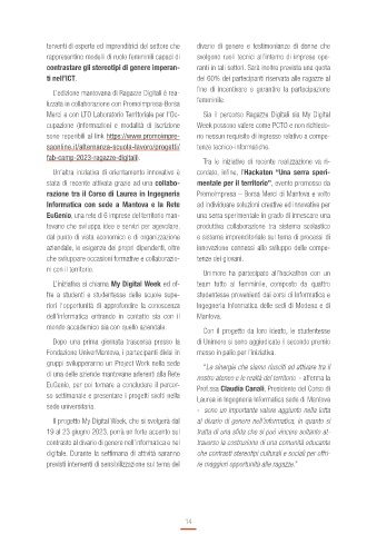 L’edizione mantovana di Ragazze Digitali è rea- fine di incentivare e garantire la partecipazione