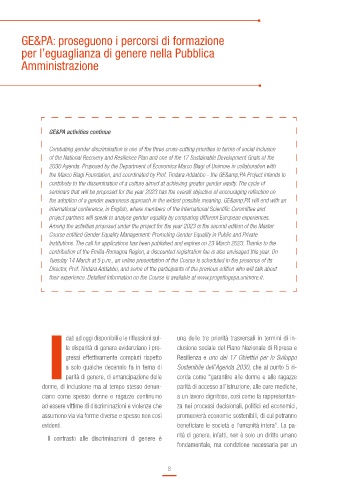 the Marco Biagi Foundation, and coordinated by Prof. Tindara Addabbo - the GE&PA Project intends to