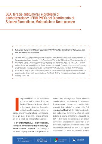 ALS, cancer therapies and literacy issues: the PRIN PNRRs of the Department of Biomedical, Meta-