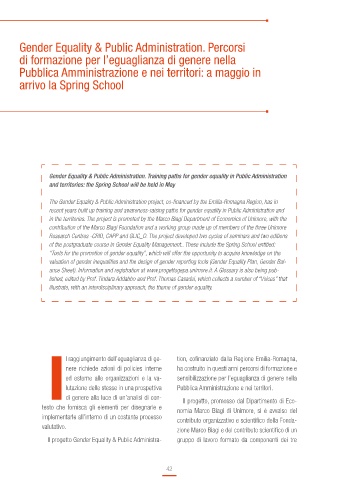 of the postgraduate course in Gender Equality Management.. These include the Spring School entitled: