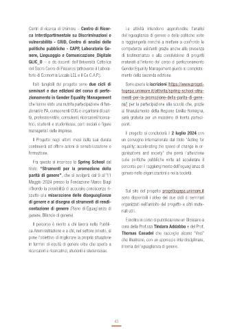del Sacro Cuore di Piacenza (attraverso il Labora- Gender Equality Management giunto al completa-