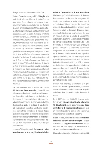 di convenzioni, anche in co-tutela di tesi. I dotto- 10 Dipartimenti, cui si aggiungono due Corsi