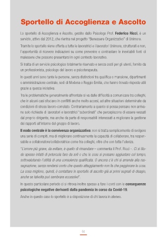 servizio, attivo dal 2012, che rientra nel progetto “Benessere Organizzativo” di Unimore.