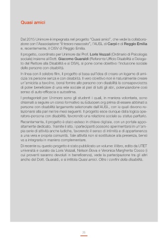 Dal 2015 Unimore è impegnata nel progetto “Quasi amici”, che vede la collabora-