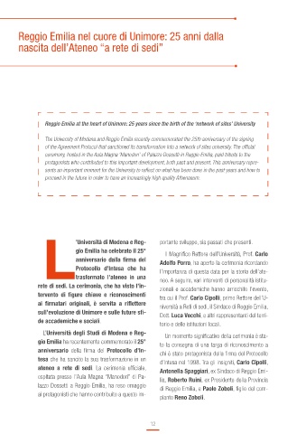 ateneo a rete di sedi. La cerimonia ufficiale, Antonella Spaggiari, ex Sindaco di Reggio Emi- re un punto di svolta per la nostra Università: la e a contribuire allo sviluppo e alla crescita della