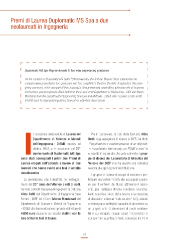 Montanari from the Department of Engineering Sciences and Methods - DISMI, who received a prize worth CM+” di calcolo fluidodinamico (CFD) che, attra-