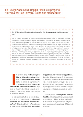 The FAI Delegation of Reggio Emilia and the project “The San Lazzaro Park. A guide to architec- la partecipazione del Prof. Giovanni Verzellesi