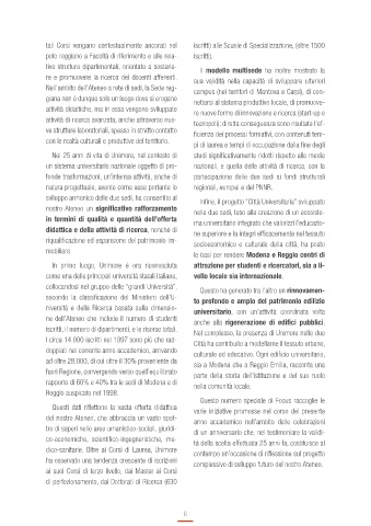 iscritti, il numero di dipartimenti, e le risorse totali. Nel complesso, la presenza di Unimore nelle due
