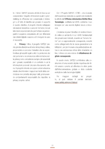 4. Privacy: Infine, il progetto SAFELY pre- come collegamento tra le nuove generazioni e le