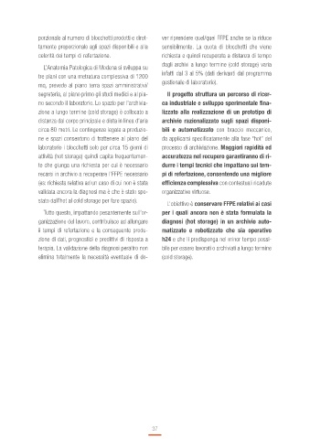 L’Anatomia Patologica di Modena si sviluppa su dagli archivi a lungo termine (cold storage) varia