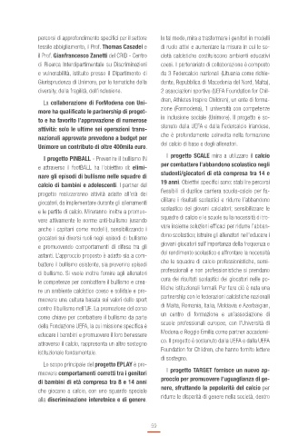 e le partite di calcio. Mireranno inoltre a promuo- scolastico dei giovani calciatori; sensibilizzare le