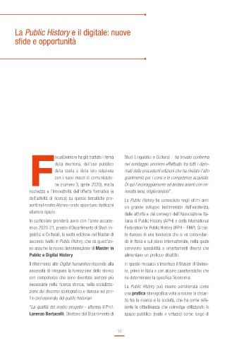 secondo livello in Public History, che da quest’an- do in Italia e sul piano internazionale, nella quale