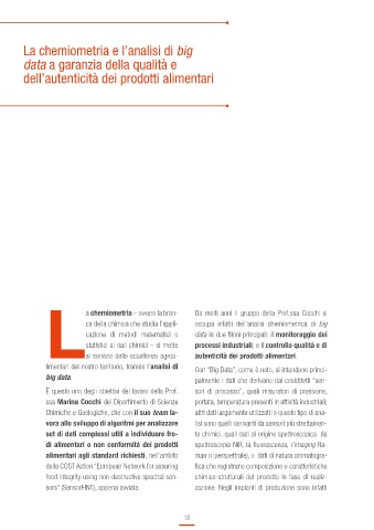 ca della chimica che studia l’appli- occupa infatti dell’analisi chemiometrica di big