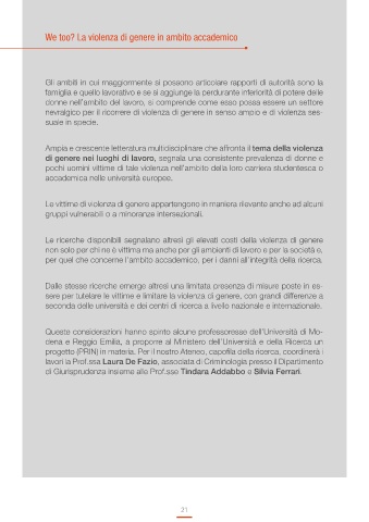 Queste considerazioni hanno spinto alcune professoresse dell’Università di Mo-