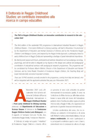 Sciences, and by Carla Rinaldi, President of Fondazione Reggio Children; the Teaching Body will