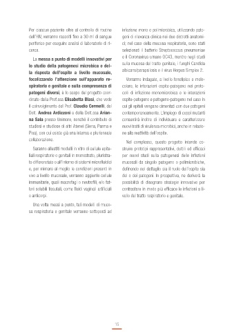 il coinvolgimento del Prof. Claudio Cermelli, del cui gli epiteli vengano cimentati con due patogeni