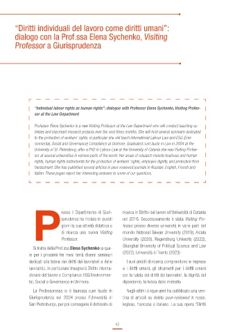 to the protection of workers’ rights, in particular she will teach International Labour Law and ESG (Envi-