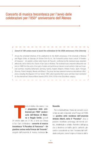 and Reggio Emilia, on Saturday 24 October from 6 p.m., the fourteenth-century music concert ‘Il Paradiso