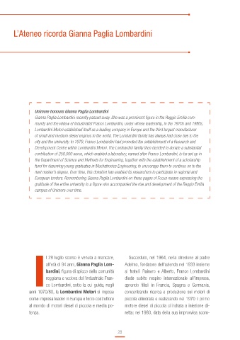 Gianna Paglia Lombardini recently passed away. She was a prominent figure in the Reggio Emilia com-