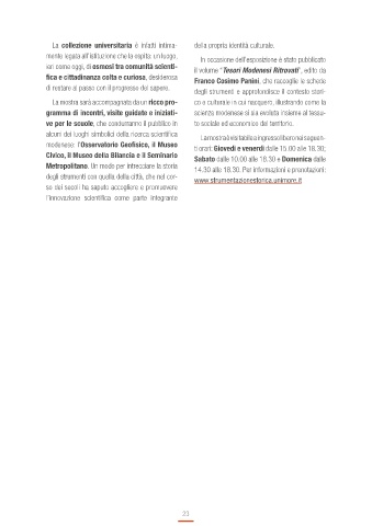 ieri come oggi, di osmosi tra comunità scienti- il volume “Tesori Modenesi Ritrovati”, edito da
