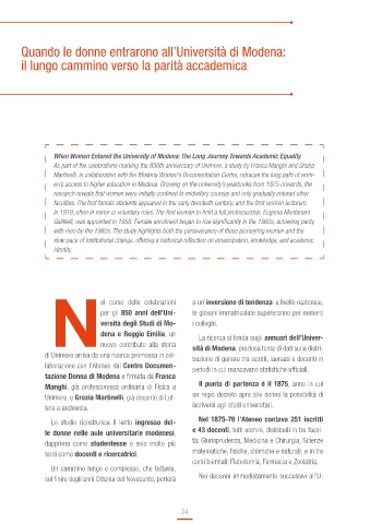 en’s access to higher education in Modena. Drawing on the university’s yearbooks from 1875 onwards, the