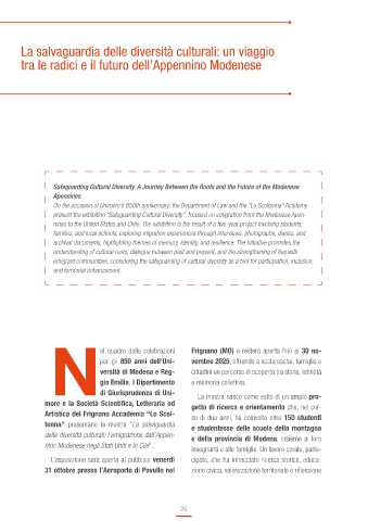 present the exhibition “Safeguarding Cultural Diversity”, focused on emigration from the Modenese Apen-